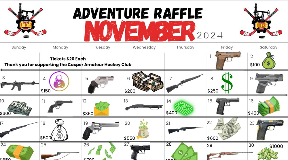 Please find our calendar and list of prizes for our Adventure Raffle.