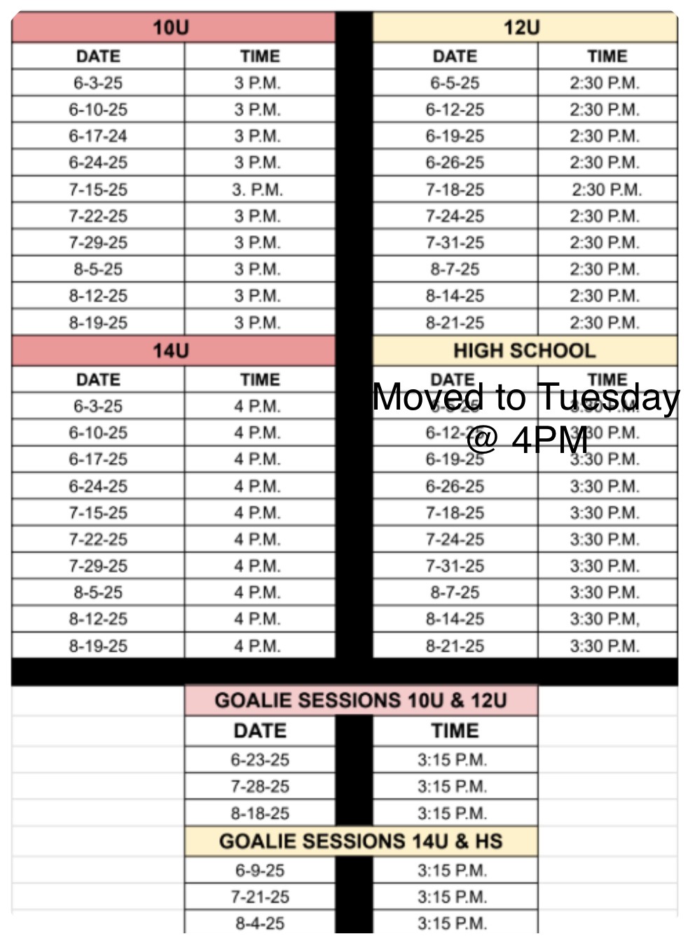 **All players registered as a Goalie will receive extra Goalie ice time sessions**