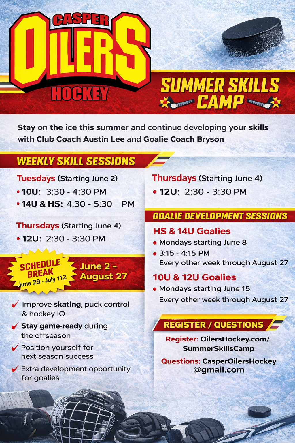 We are excited to announce the Casper Oilers Summer Skills Camp!